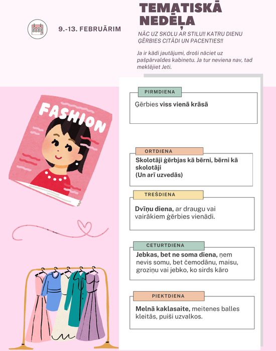 Piektdiena: melnā kaklasaite. Meitenes balles kleitās, puiši uzvalkos.